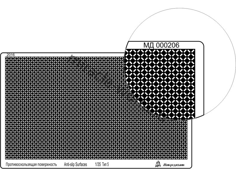 МД 000206 Профнастил тип 5, прямая диагональ с просечкой. Размер 95х55 мм. Материал: латунь 0,15 мм. Микродизайн 000206