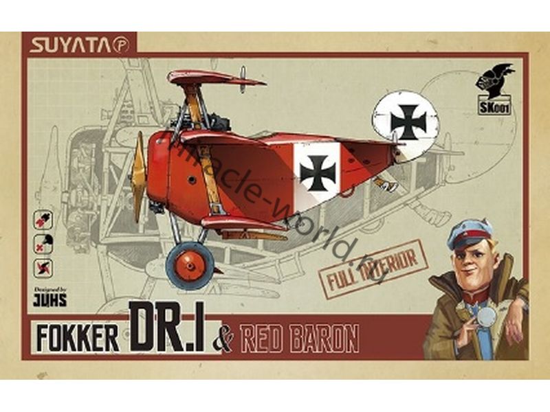 Сборная модель немецкого истребителя биплана Fokker Dr.I & "Red Baron" с полным интерьером в масштабе Модели "Eggs" от фирмы Suyata (артикул SK-001).