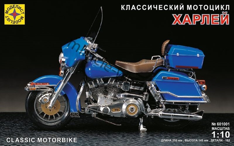 Сборная модель американского мотоцикла Harley-Davidson / Харли-Дэвидсон / Харлей в масштабе 1/10 от фирмы Моделист (артикул 601001).
