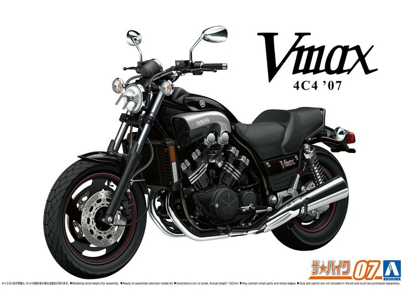 Сборная модель японского мотоцикла Yamaha 4C4 Vmax '07 в масштабе 1/24 от фирмы Aoshima (артикул 6230).