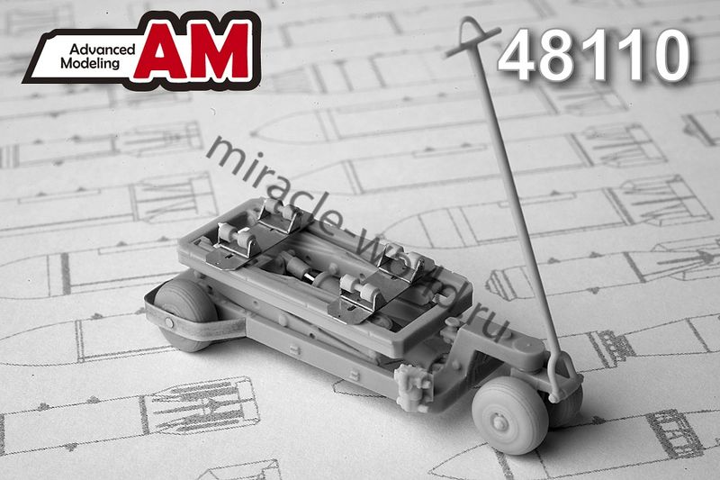 Дополнение для сборных моделей советской / российской авиации (ВКС) Тележка с гидроподъемником для подвески авиабомб калибром до 500 кг + фототравление в масштабе 1/48 от фирмы Advanced Modeling (артикул 48110).