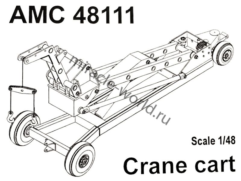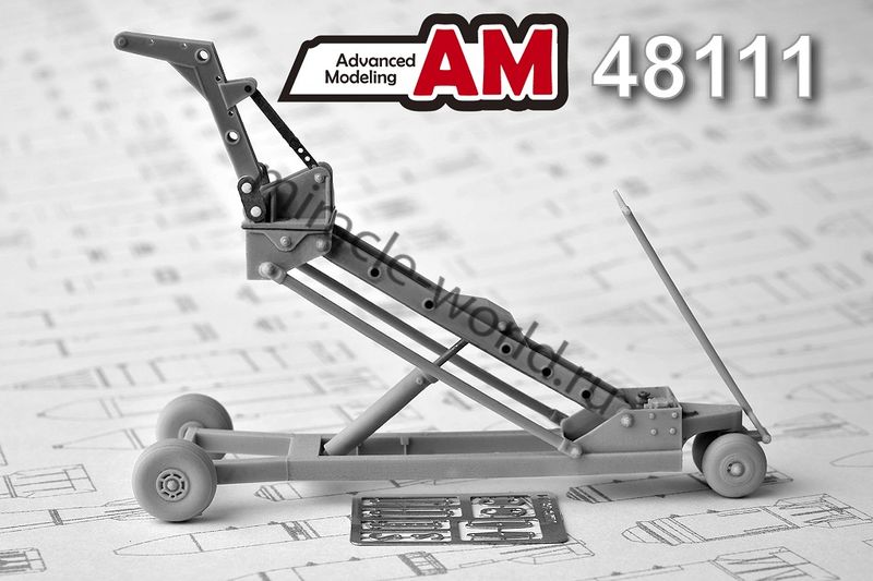 Дополнение для сборных моделей советской / российской авиации (ВКС) Кран-тележка с гидроподъемником для подвески авиабомб калибром до 500 кг + фототравление в масштабе 1/48 от фирмы Advanced Modeling (артикул 48111).