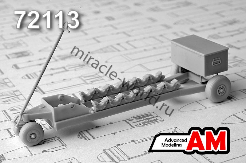 Дополнение для сборных моделей советской / российской авиации (ВКС) Тележка для транспортировки 50-100 кг авиабомб (1шт. в наборе) в масштабе 1/72 от фирмы Advanced Modeling (артикул 72113).