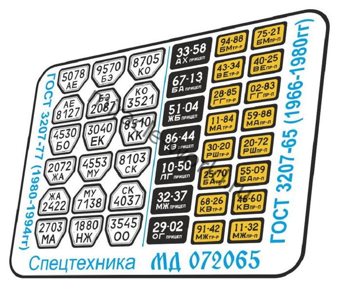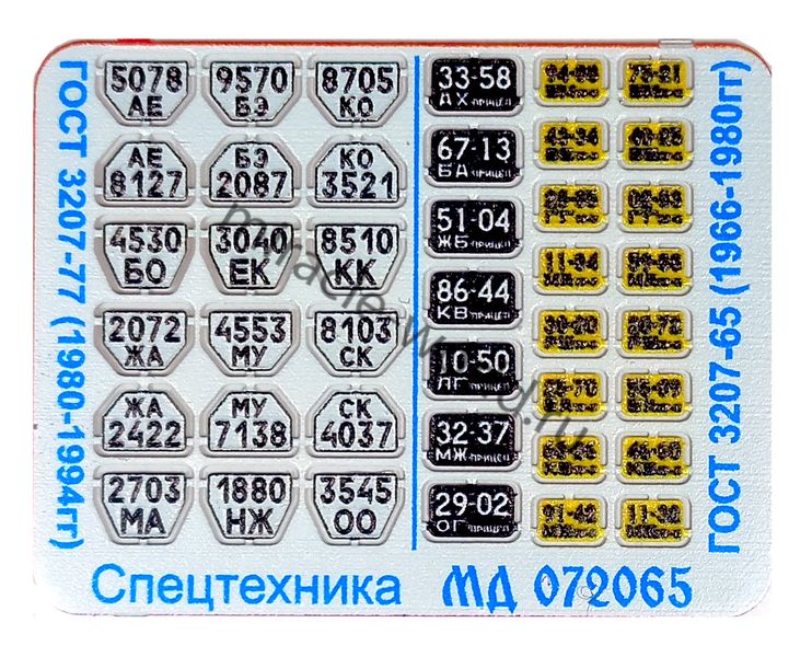 Микродизайн 072065 Набор цветных номеров на трактора и прицепы СССР выполненных в объеме и цвете. Масштаб 1:72. Материал: латунь 0,17 мм. Набор комплектуется 22 вариантами номеров. Уровень сложности: простой