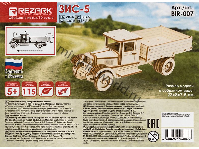 Сборная модель из дерева Пазл 3D "Автомобиль (З) тип 5" в масштабе 1/XXX от фирмы REZARK (артикул BIR-007).