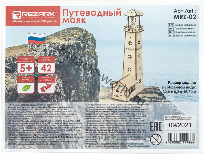 Сборная модель из дерева Пазл 3D "Путеводный маяк" в масштабе 1/XXX от фирмы REZARK (артикул MRZ-02).