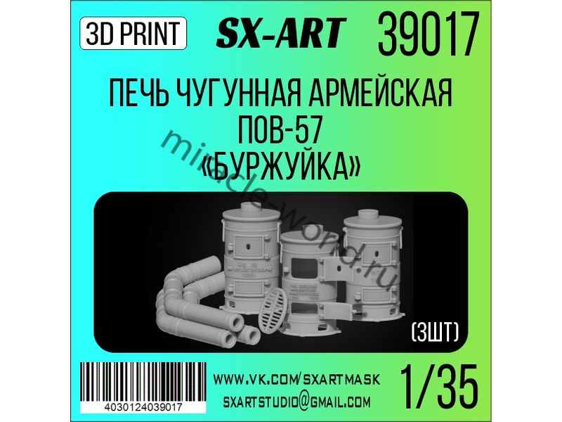 Сборная модель Печь чугунная армейская ПОВ-57 "Буржуйка" (3шт.) в масштабе 1/35 от фирмы SX-Art (артикул 39017).