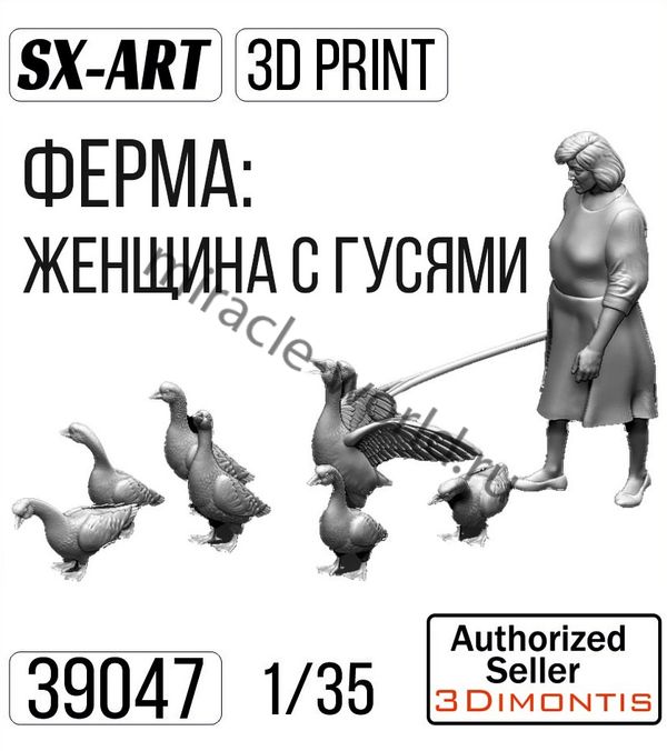 Сборная модель миниатюры "Ферма: Женщина с гусями" в масштабе 1/35 от фирмы SX-Art (артикул 39047).