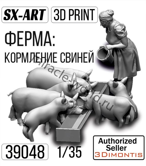 Сборная модель миниатюры "Ферма: Кормление свиней" в масштабе 1/35 от фирмы SX-Art (артикул 39048).