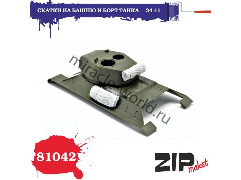 Скатки на башню и борт для Танк 34. №1 (2 шт.) в масштабе 1/35 от фирмы ZIP maket (артикул 81042).