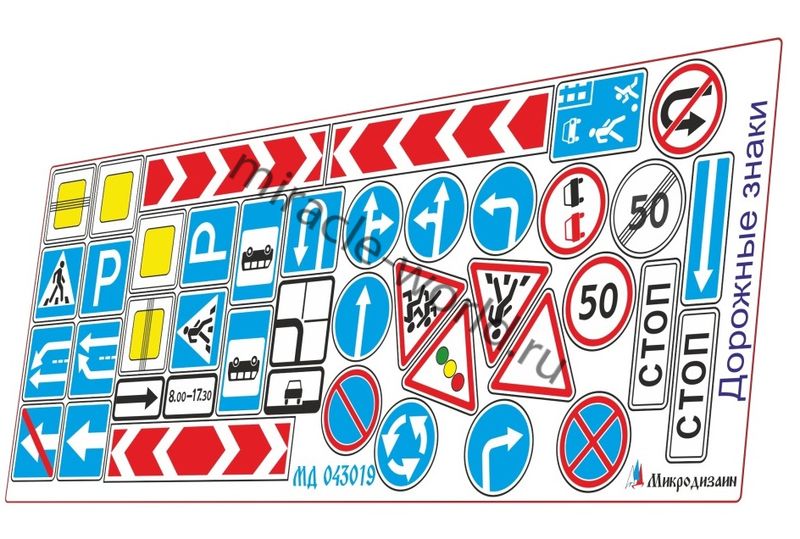 Микродизайн 043019 Дорожные знаки общего назначения /цветной набор фототравления/ 1/43