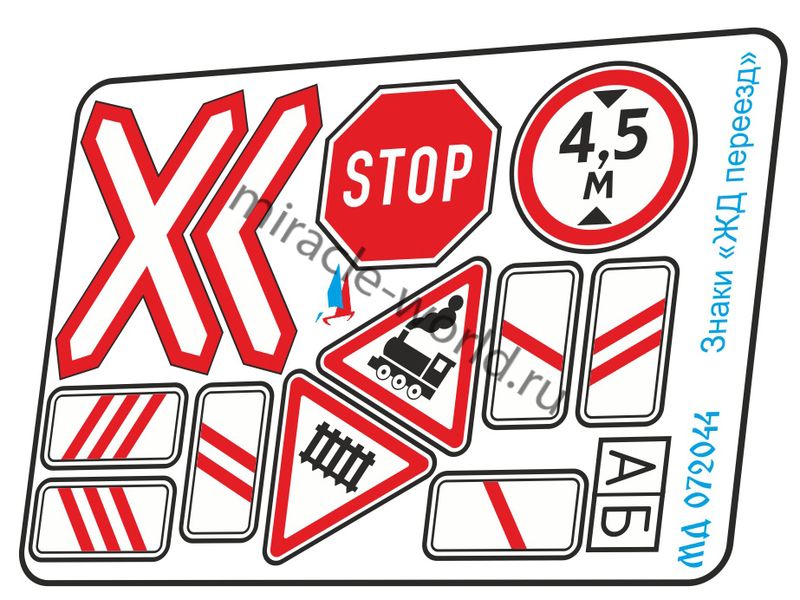 Микродизайн 072044 Набор знаков "Железнодорожный переезд" /цветной набор фототравления/ 1/72