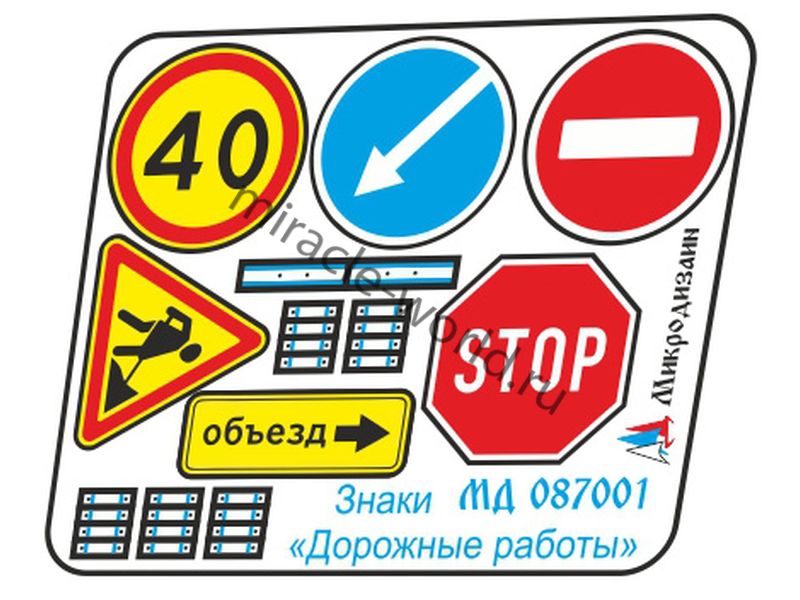Микродизайн 087001 Набор знаков "Дорожные работы" /цветной набор фототравления/ 1/87