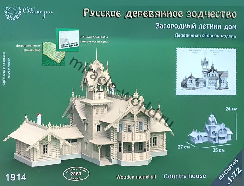 Сборная модель из дерева Загородный летний дом в масштабе 1/72 от фирмы СВ Модель (артикул 1914).