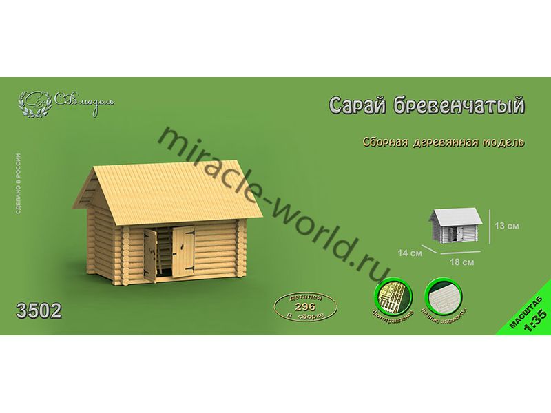 Сборная модель из дерева Сарай бревенчатый1/35 от фирмы СВ Модель (артикул 3502).