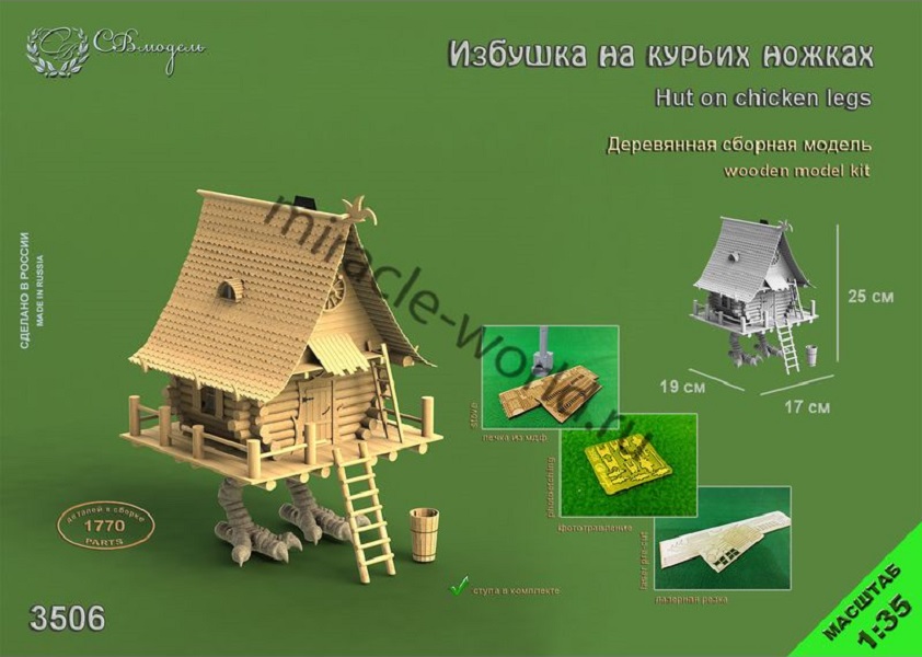 Сборная модель из дерева Избушка на курьих ножках1/35 от фирмы СВ Модель (артикул 3506).