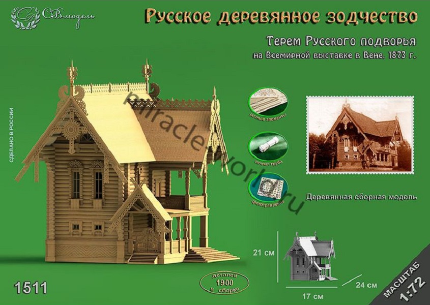 Сборная модель из дерева Терем Русского подворья в масштабе 1/72 от фирмы СВ Модель (артикул 1511).