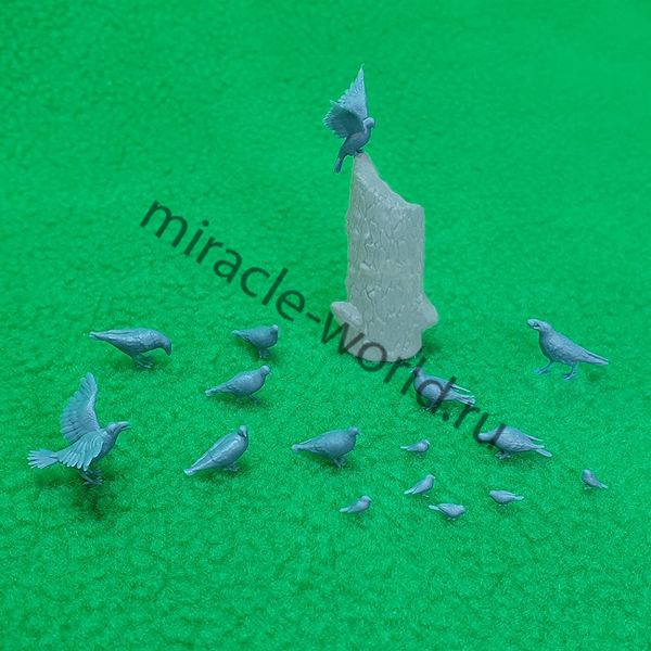 Сборная модель миниатюр Набор фигурок "Городские птицы", в него входит: ворона 3 шт (3 вида) - голубь 7 шт (6 видов) - воробей 6 шт (2 вида). Всего 16 фигурок.1/35 от фирмы СВ Модель (артикул 6033).