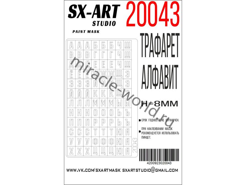 SX-Art 20043 Трафарет алфавит тип 1 (высота букв 8мм)