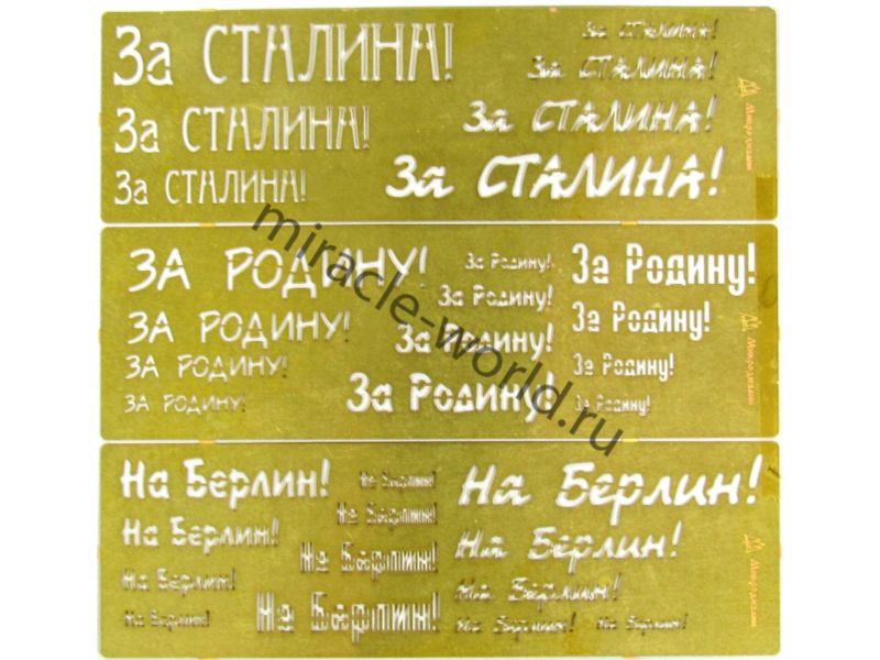 МД 100206 Трафарет покрасочный №2 "За Родину, За Сталина, На Берлин!" Материал: латунь 0,17 мм. Микродизайн