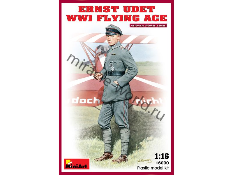 Сборная модель миниатюры Эрнст Удет (летчик - ас WWI) в масштабе 1/16 от фирмы MiniArt (артикул 16030).