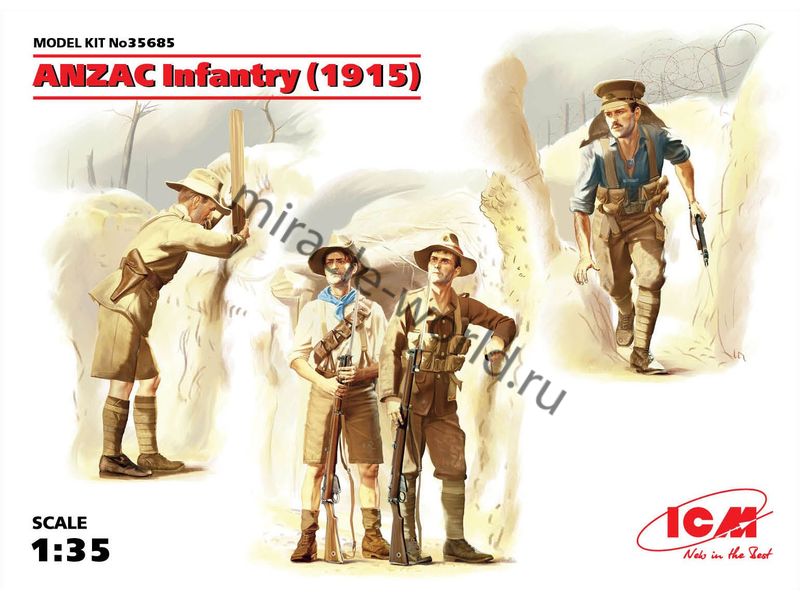 Сборная модель Пехота АНЗАК (1915г.) в масштабе 1/35 от фирмы ICM (артикул 35685).