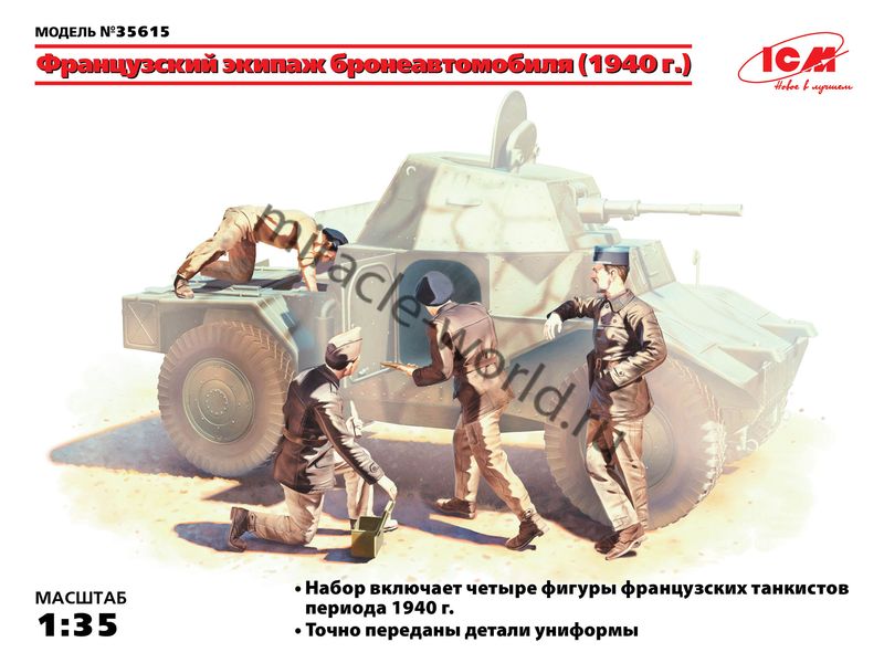Сборная модель Французский экипаж бронеавтомобиля (1940г.) в масштабе 1/35 от фирмы ICM (артикул 35615).