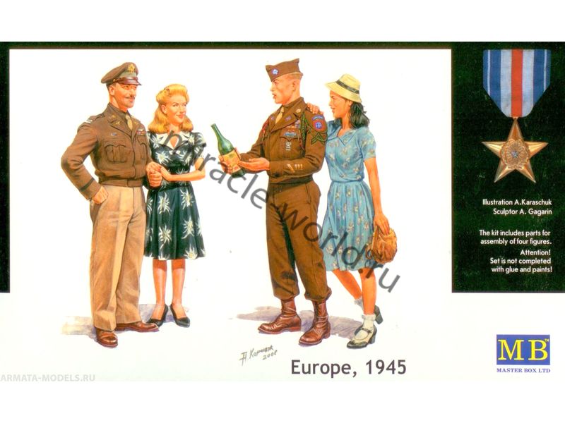 Сборная модель Военнослужащие союзников с девушками (Европа, 1945г.) в масштабе 1/35 от фирмы Master Box (артикул 3514).