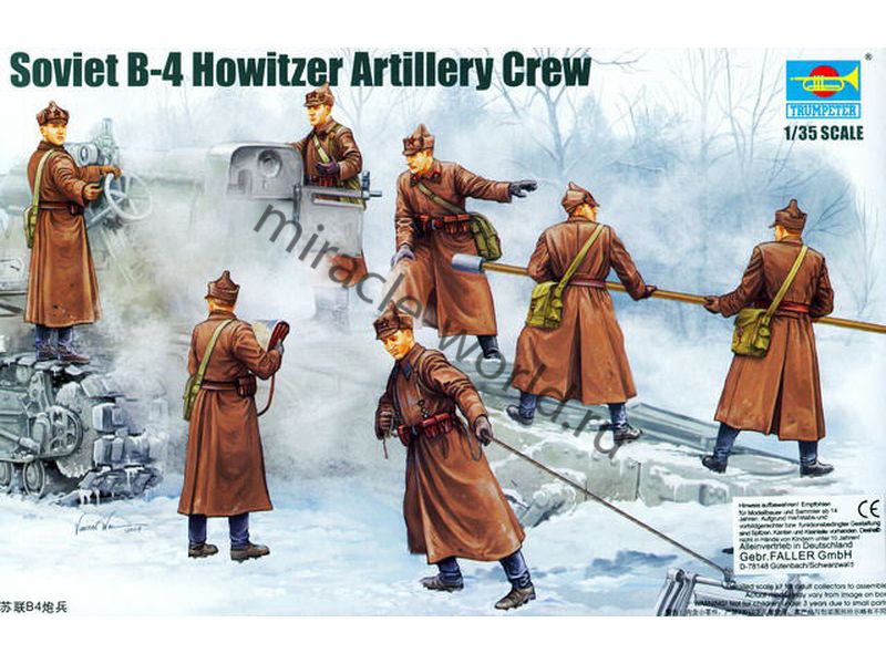Сборная модель миниатюр советского артиллерийского расчета гаубицы Б-4 Soviet B-4 Howitzer Artillery Crew в масштабе 1/35 от фирмы Trumpeter (артикул 00427).