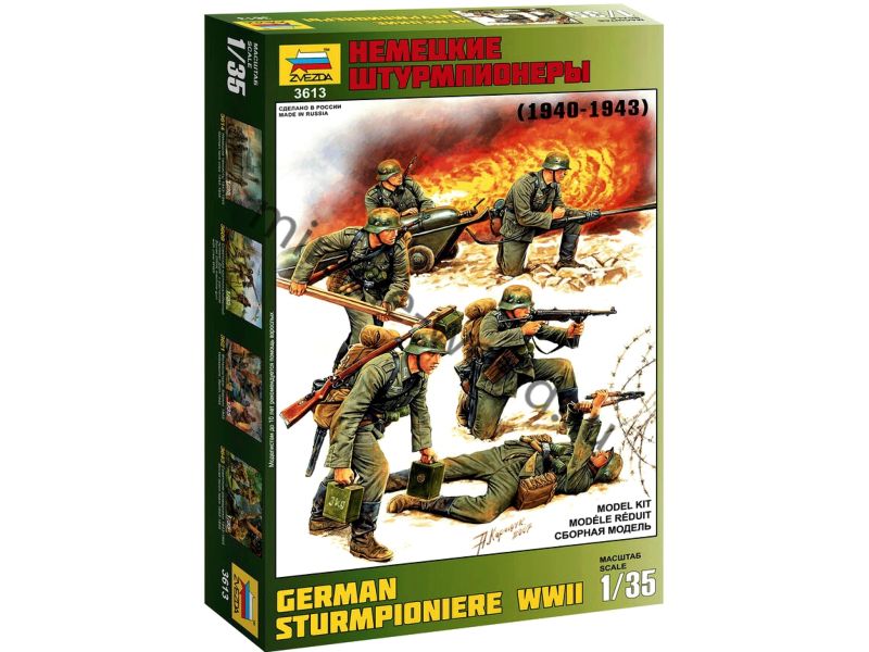 Сборная модель миниатюр Немецкие штурмпионеры (WWII) в масштабе 1/35 от фирмы Звезда / Zvezda (артикул 3613).