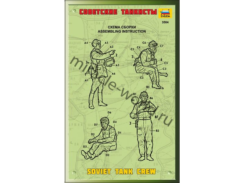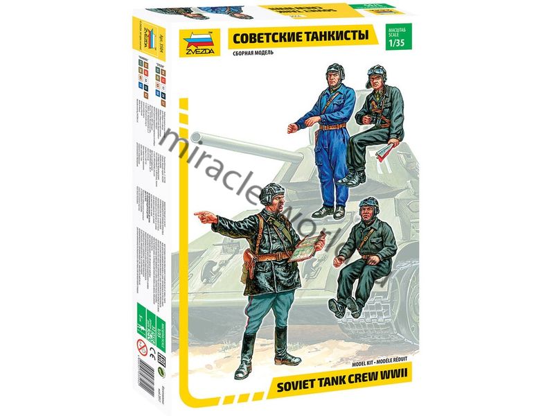 Сборная модель миниатюр Советские танкисты (WWII, 4 фигуры) в масштабе 1/35 от фирмы Звезда / Zvezda (артикул 3504).