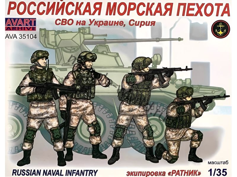 Сборная модель военно-исторической миниатюры Российская морская пехота (4 фигуры) /СВО на Украине, Сирия/ в масштабе 1/35 от фирмы Avart Arhive (артикул AVA35104).