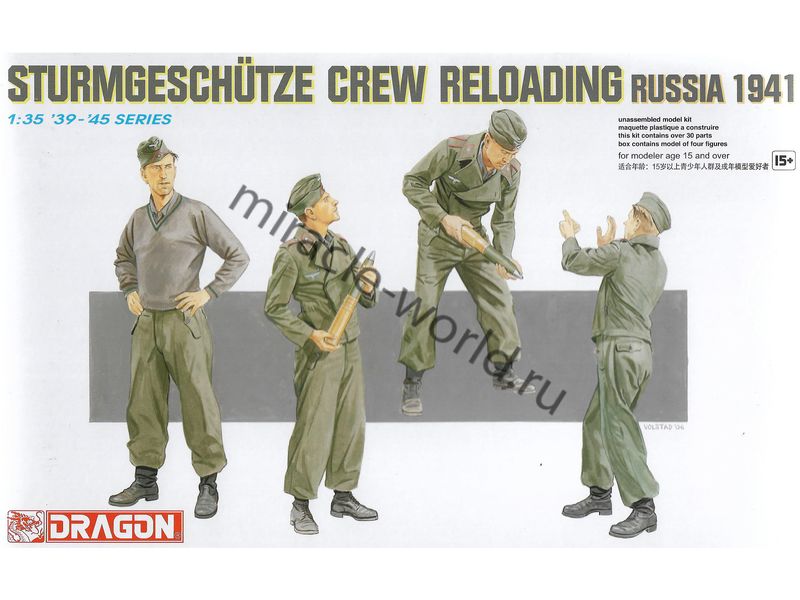 Сборная модель экипажа немецкой самоходной артиллерийской установки Sturmgeschutze Crew Reloading (Россия, 1941г.) в масштабе 1/35 от фирмы Dragon (артикул 6192).