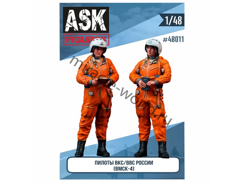 Сборная модель военно-исторической миниатюры Пилоты ВВС\ВКС России в ВМСК-4 (2 фигуры) в масштабе 1/48 от фирмы ASK (артикул 48011).