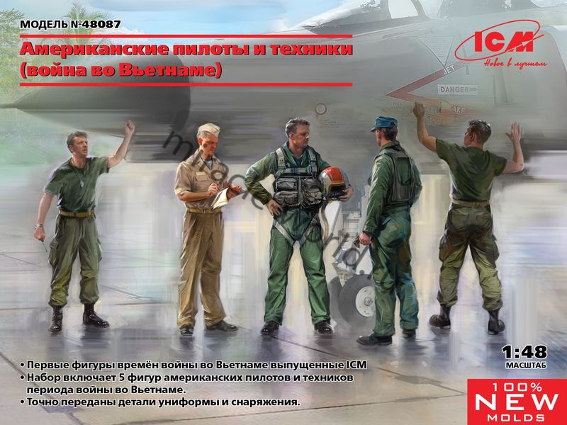 Сборная модель миниатюр Американские пилоты и техники (война во Вьетнаме) в масштабе 1/48 от фирмы ICM (артикул 48087).
