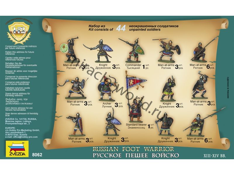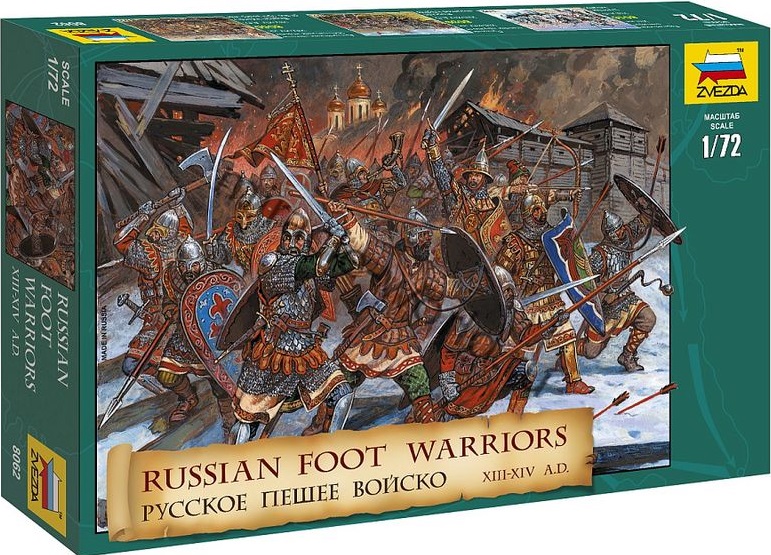 Сборная модель миниатюр Русское пешее войско (XIII-XIV A.D.) в масштабе 1/72 от фирмы Звезда / Zvezda (артикул 8062).