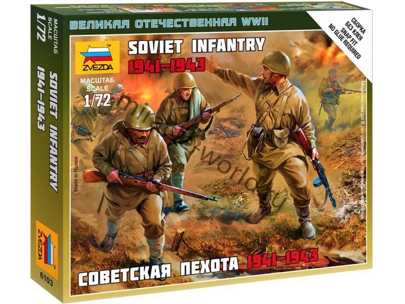 Сборная модель миниатюр Советская пехота (1941-1943г.) в масштабе 1/72 от фирмы Звезда / Zvezda (артикул 6103).