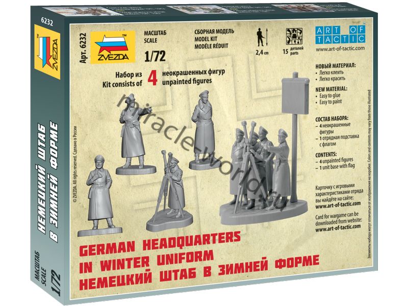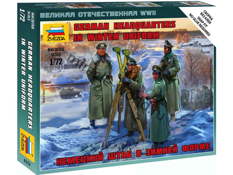 Сборная модель миниатюр Немецкий штаб в зимней форме (WWII) в масштабе 1/72 от фирмы Звезда / Zvezda (артикул 6232).
