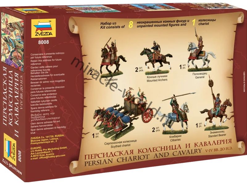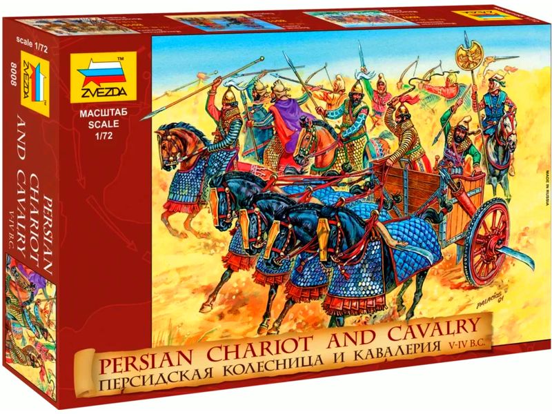 Сборная модель миниатюр Персидская колесница и кавалерия (V-VI B.C.) в масштабе 1/72 от фирмы Звезда / Zvezda (артикул 8008).