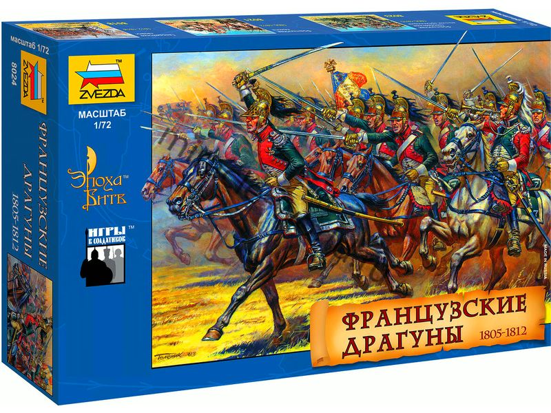 Сборная модель миниатюр Французские драгуны (1805-1812г.) в масштабе 1/72 от фирмы Звезда / Zvezda (артикул 8024).