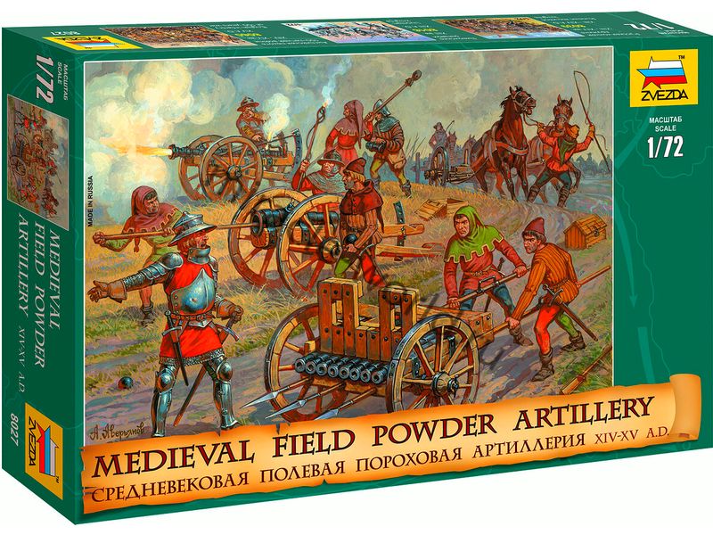 Сборная модель миниатюр Средневековая полевая пороховая артиллерия (XIV-XV A.D.) в масштабе 1/72 от фирмы Звезда / Zvezda (артикул 8027).