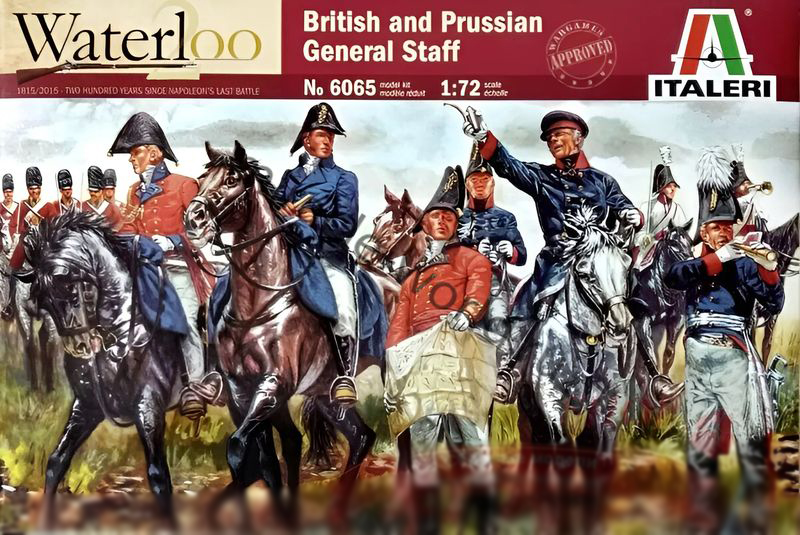 Сборная модель миниатюр британский - прусский штаб, периода Наполеоновских войн British and Prussian Allied General Stuff в масштабе 1/72 от фирмы Italeri (артикул 6065).