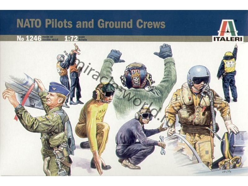 Сборная модель пилотов и авиационных техников стран НАТО NATO Pilots & Ground Crews в масштабе 1/72 от фирмы Italeri (артикул 1246).