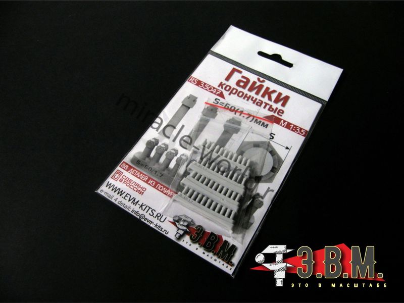 RS35047 Гайки корончатые S=60 (1.7). Масштаб 1/35. Предназначены для повышения деталировки моделей техники в любом масштабе. Материал: полиуретановая смола.